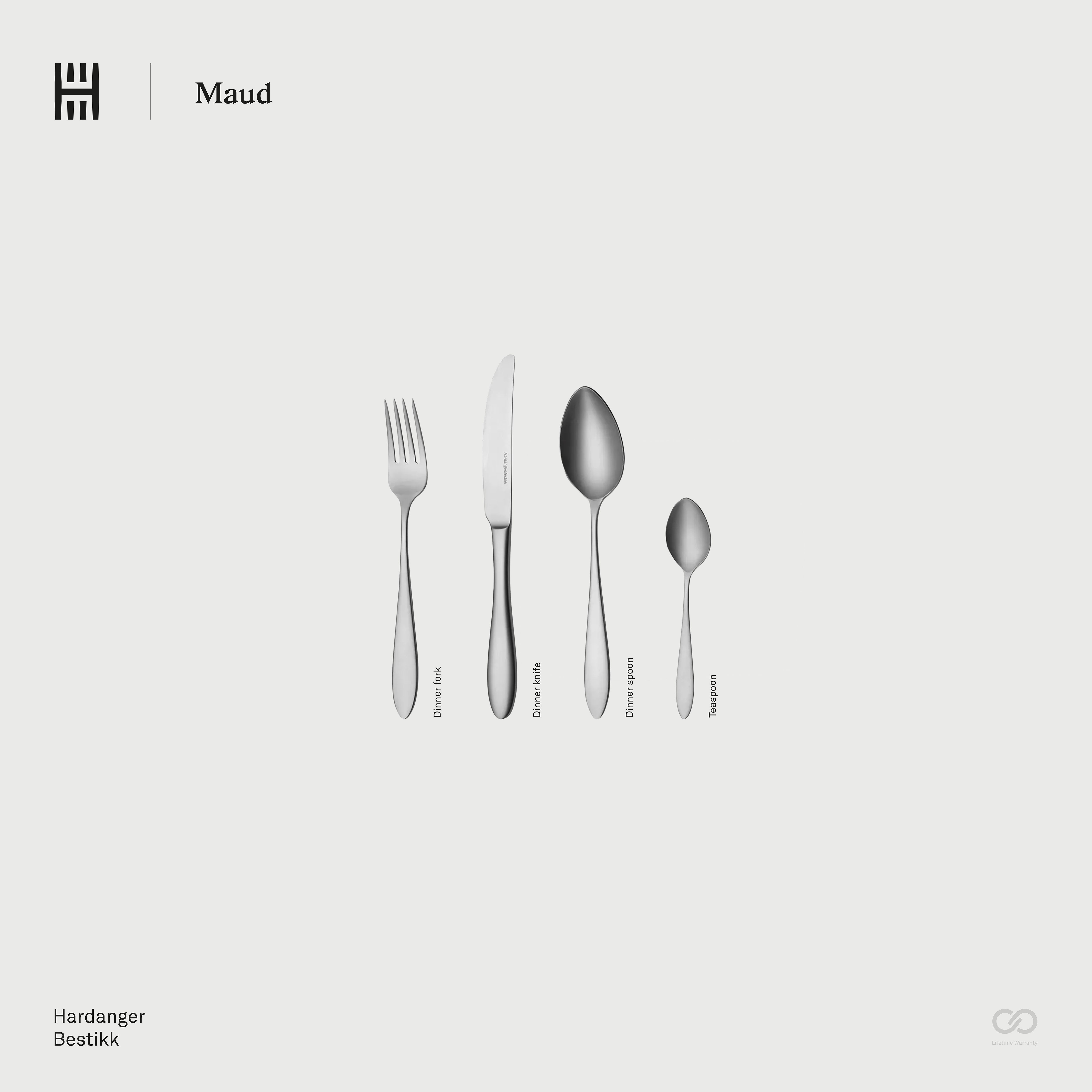 Maud – a cutlery that unites exclusive design with practical elegance. With its robust and honest character, Maud shines in a subtle splendor through its clean and balanced design. The conforming yet muted features enhance both the aesthetic and tactile aspects. Maud is a trustworthy cutlery for any meal – from the everyday to the extraordinary.